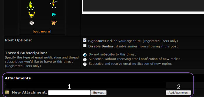 | This site allows images up to 1000px wide, 1500px tall, and 400Kib size. However, if you don't want to link such a big file (and absorb the bandwidth on your image host), members can upload files as post attachments. Down beneath the text entry box (in most Forums), you should see an option for "Attachments" - you can upload directly from your PC to post. 1. Browse to locate your image on your PC ![]() 2. Then Click the Add Attachment button (far right) 3. After you see that the image has been uploaded, click the Insert Image button to copy the image into your post. ![]() You will know that the image attached when you see a notation similar to this: ![]() You can not see the attachment when you preview the post, only after you click the Post Reply button. There are 2 caveats with attachments: 1. They can't be seen by guests. But since only members vote, that doesn't matter if you are posting an image for a contest. 2. There is a per-member quota. Just above the "browse" box there is a note that tells you how much of your quota you have used and whether you want to view your attachments (which you can also delete to manage your quota). If you are approaching the limit, please ping an Admin as we can reset this limit. This site supports other attachments besides image files. For example you can attach a psd or mp3 file. Ping an Admin for file size limits. |